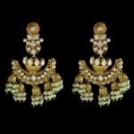 - Gold-plated Judao worked earrings embellished with ruby stones, emerald stones with pearls finishing.