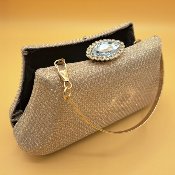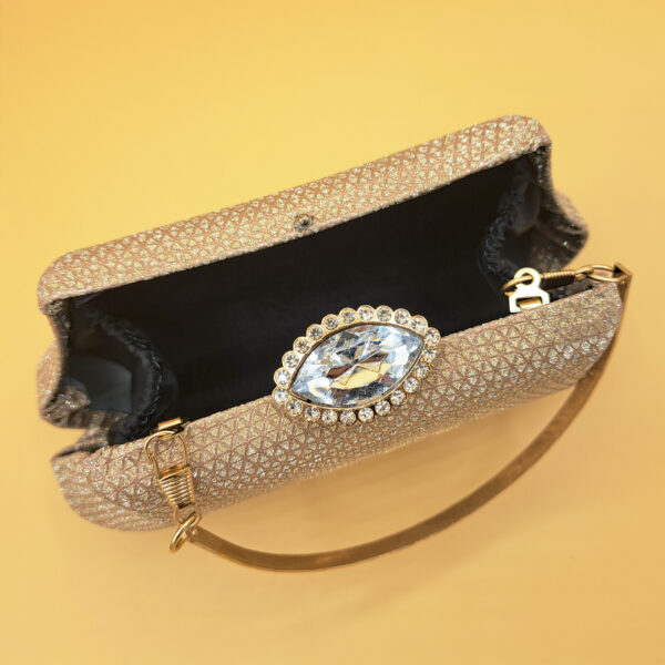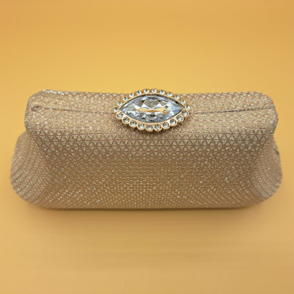 Add a touch of timeless elegance to your look with this stunning champagne-toned clutch.