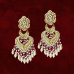 - Exquisitely hand-carved Goldplated thappa kundan earrings embellished with fine kundan stones along with pearls embellishments.