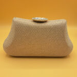Materials: Hard-shell body, crystal embellishments, and gold-toned metal frame.