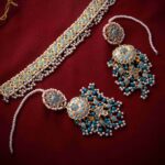 - Gold-plated handworked thappa kundan-pearl necklace finely embedded with kundan stones and natural pearls.
