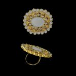 - Gold-plated Dual ring embellished with grey zircon stones and white pearls.