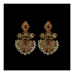 - Gold-plated Sheesha Kundan earrings embossed with fine kundan stones along with white and green pearls finishing.
