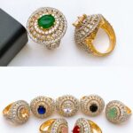 Alluring piece of gold-plated ring finely embellished with real zircon stones and customised semi-precious centre stones.