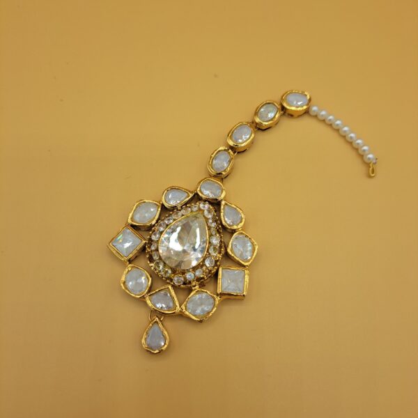 Gold-plated handworked kundan polki earrings embellished with polki stones.