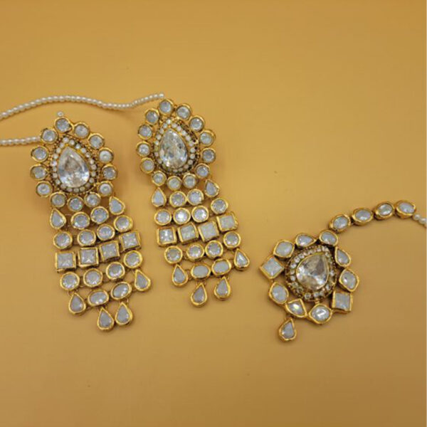 Gold-plated handworked kundan polki earrings embellished with polki stones.