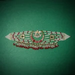 - Goldplated thappa kundan choker cum necklace heavily embellished with fine kundan stones, champagn and ruby pearls.