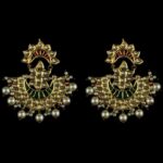 - Gold-plated Thappa kundan-pearl jhumar shaped earrings embellished with fine kundan stones along with finishing of natural, ruby and ruby crystal pearls.